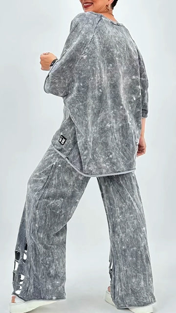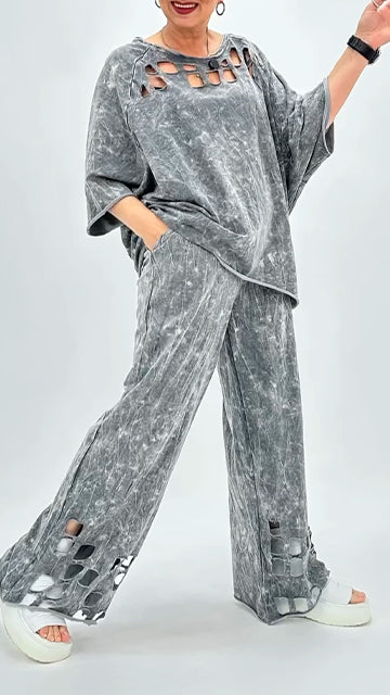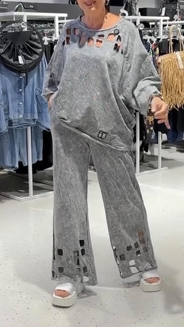 Ladies' Round Neck Hollowed Out Top+ Pants Loose Casual Suit