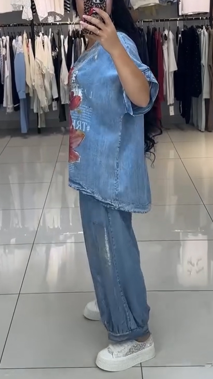 Ladies' Round Neck Printed Top + Pants Casual Set